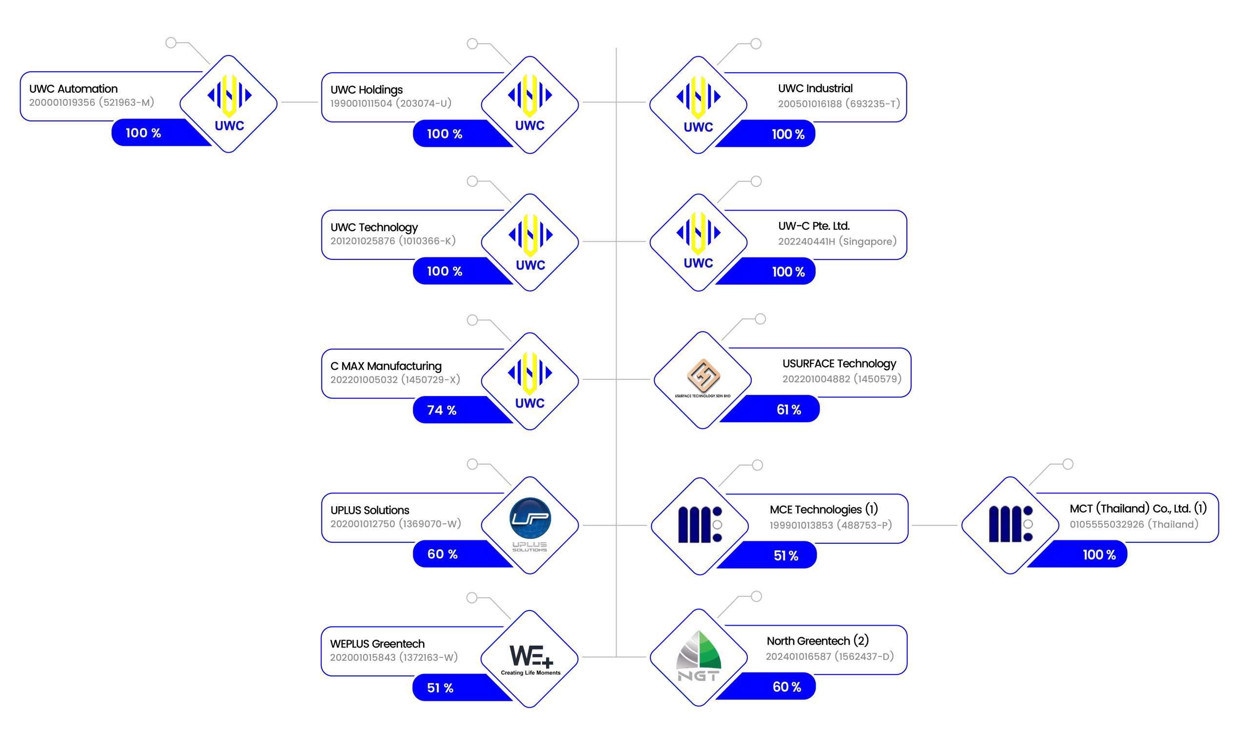 | UWC Technology Sdn. Bhd. (Formerly known as Surfplate Technology Sdn. Bhd.) | 18 July 2012 | 100% | Manufacturing of front-end semiconductor equipment and components |